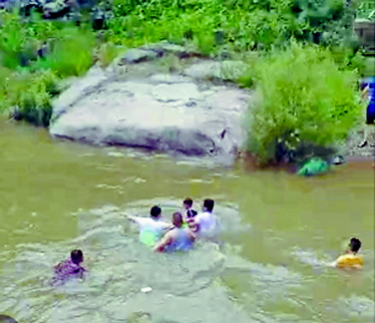 眼看孩子已经被水流冲出了三四十米远,情况十分危急。“当时周围的人看到了都在呼救,可是水流太急太快,谁也不知道下面这水有多深,情况特别危险,就在那时候,有两三个人从沿河的饭店跑出来,跳了下来。”视频中,跳下河的三四个人同时游向在水中挣扎的孩子,齐心合力把孩子捞了起来,救到了岸边。