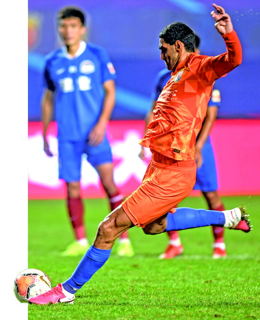 费莱尼的点球帮助鲁能锁定胜局。 新华社发