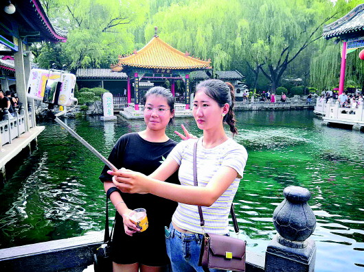 趵突泉地下水位摆脱预警线后,三股水喷涌的盛况吸引了不少游客。