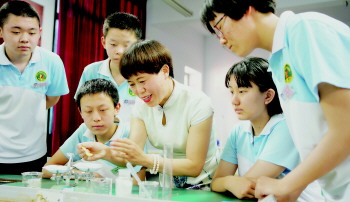 “李老师让化学课堂变得轻松有趣,让我常常有听不够的感觉。”学生郑一通说。