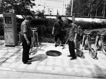 市政设施执法大队接到指令后,立即调派执法人员顶着38℃的高温到达现场查看情况,并现场调度长途传输局、投资公司、移动公司和电信公司等相关人员到达现场进行确认,该通讯井深约2米,井内有多家通讯线缆,各通讯部门均表示不属于他们。为消除安全隐患,保障市民出行安全,最后确认由移动公司进行整改,当天下午问题得到圆满解决。
