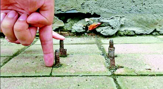 “当时我想,小区都建成了,开发商早就撤离了,我上哪里找开发商。后来我就继续反映,结果到现在也没有人给我答复这四颗钉子到底是谁的。”