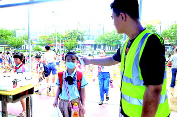 开学啦 8月31日是开学第一天。经历了一个暑假,同学们终于又回到了学校。这也意味着新的学期开始。好久不见,甚是想念。日照金海岸小学门口,同学们排着队,量体温后有序进入校园。 齐鲁晚报·齐鲁壹点记者 郑玥 摄