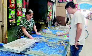 在南下河市场,市民正在选购海鲜尝鲜。