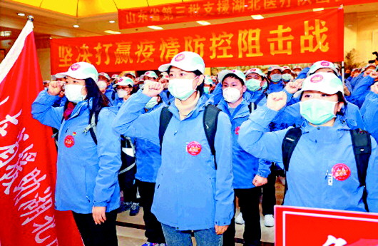 2月2日下午,济南遥墙国际机场,山东第三批援助湖北医疗队出发,飞赴湖北武汉。 大众报业记者 卢鹏 摄