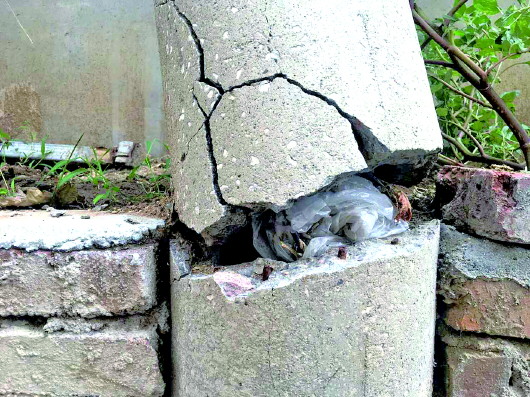 本报济南9月9日讯(记者 刘飞跃) “这线杆都断成这样了,仅靠一道墙支撑着默默地坚守,指不定哪天坚持不住了,倒霉的又是谁?”8日,壹粉“袁279635”反映,省城历城区工业南路一小区内一根线杆快倒了,上半截完全靠墙撑着,非常危险。9日,葡萄园居委会工作人员告诉记者,前期已经与运营商协商,计划周五拔除。