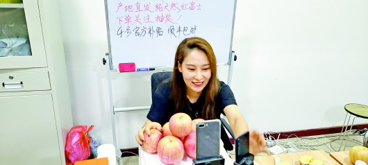 烟台苹果界“网红”刘爽正在直播带货