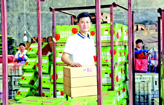 8月31日,于凯店铺每天销售的苹果达到35万斤,他给多多果园每天供货5万斤。每天需要十几辆大货车,才能把当天的订单发完。仅仅在一个车间里打包的工人就超过200名,要3家包材厂同时供货,才能满足每天的包装需求。