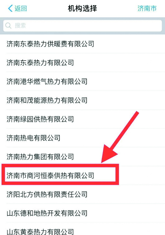 第三步:选择点击“济南市商河恒泰供热有限公司”