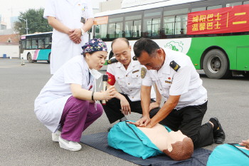 “不好了,公交车着火了……”9月8日,在即墨烟青路公交枢纽南站,交运温馨巴士与公交城阳巴士四公司联合青岛莲池妇婴医院、即墨区大队振中街消防中队,以公交车着火为背景,现场抢救伤员、婴儿气道异物梗阻等模拟情景再现,开展应急处置消防急救综合性实战化演练。共100余人参加,此次演练有效提高了,公交驾驶员应对突发紧急状况的反应指挥、科学专业的自救和互救能力。