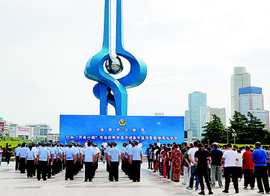 济南市公安局在泉城广场举行打击“两盗一骗”违法犯罪专项行动集中宣传暨赃物返还活动。