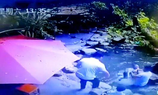 9月12日,有网友在社交媒体发布一条监控拍摄的视频,视频中一名儿童在水边玩耍时不慎落水,危难之际一名白衣男子迅速从自己的座位上起身,绕过半个池塘迅速下水救人。从儿童落水到成功被救起,仅用时不到10秒钟。