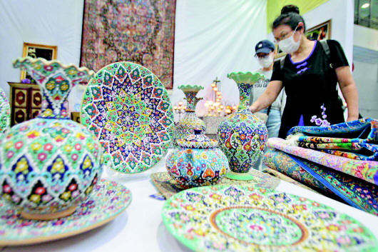 伊朗的手工钻雕艺术铜盘吸引了不少观众。