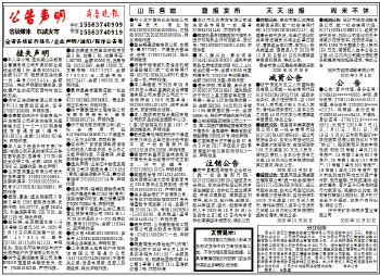 ●遗失声明:山东汇中物流发展有限公司不慎遗失鲁CC5956(黄色)道路运输许可证,鲁交运管淄字370305315724号,声明作废