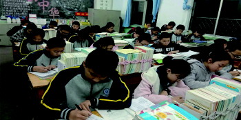 沂源县三岔中心学校寄宿学生坚持早读,提高学习效率。