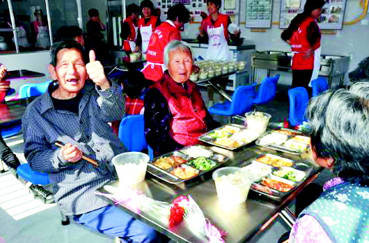 村里老人吃上免费午餐。
