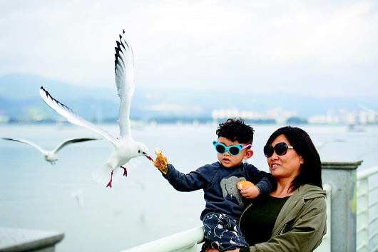 11月1日,游客在昆明海埂大坝观赏、投喂红嘴鸥。近日,昆明“荣誉市民”红嘴鸥如约而至,与市民和游人和谐相处,延续着自1985年首到春城过冬以来30余年的“春城之约”。 新华