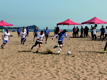 10月30日,崂山区“体彩杯”第十九届青年足球赛暨第六届青年创客沙滩趣味足球赛举行,22支青年队伍在石老人海水浴场竞技。崂山区青年足球赛始创于2001年,一年一届,本届沙滩足球赛是国际青年时尚艺术节的重要内容之一。经过激烈角逐后,崂山文旅委夺得五人制沙滩足球赛冠军,中韩街道则拿下“激情碰撞”趣味足球赛的头名。