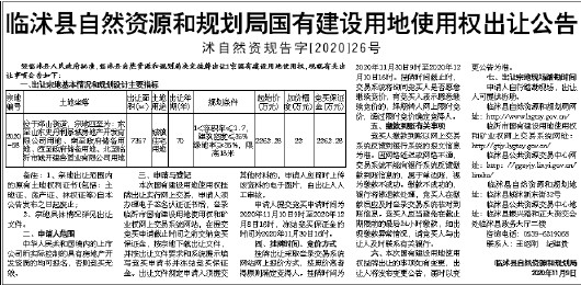 经临沭县人民政府批准,临沭县自然资源和规划局决定挂牌出让1宗国有建设用地使用权,现就有关出让事项公告如下: