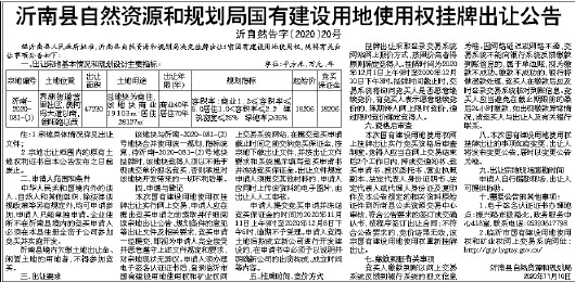 沂南县自然资源和规划局国有建设用地使用权挂牌出让公告
