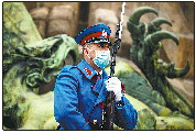 11月11日,一名塞尔维亚士兵在贝尔格莱德参加一战结束102周年纪念活动。当日,欧洲各地举行纪念活动。 新华