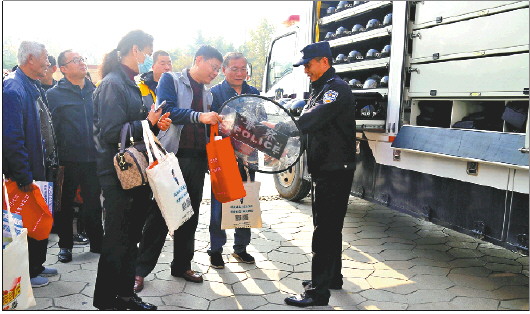在警务装备展示区,分局巡警大队和区消防救援大队向参观人员介绍了各类常见的警械武器装备、应急救援装备,并现场进行了展示。当听到全副武装的单警装备接近40斤重时,一位企业代表感叹:“你们真不容易,每天这样执行任务,辛苦了!”