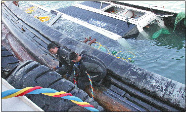 9时50分,现场搜寻B-7309机组与“北海救203”轮联合搜寻,打捞出1名遇难者。10时30分,潜水员下水探摸进入遇险船舱内,发现两具罹难者遗体,随即打捞出水。