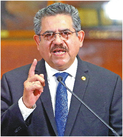 9日,时任秘鲁总统比斯卡拉遭国会弹劾后发表讲话。 新华/美联