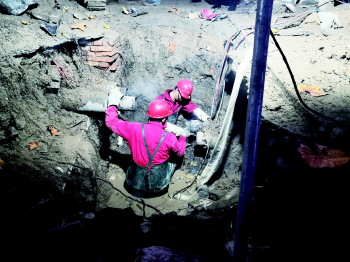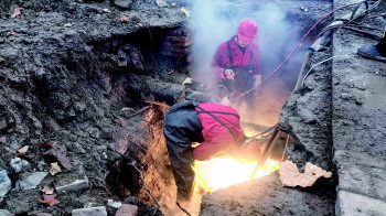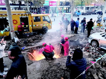 下午5时许,经过带水切割、排空存水和气割后,破损的管道被抢修人员从作业坑中提了上来,然后焊接了新管道。抢修人员介绍,新管道通过超声检查和打压测试后,可恢复正常供暖,抢修预计总需10个小时。