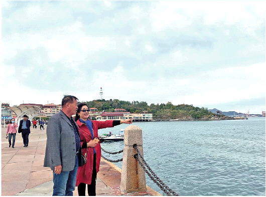 上图:马素平带大表哥王树英到烟台滨海广场游玩。