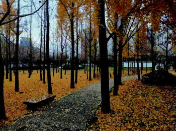 随着冬日气息越来越浓,城市马路上、公园草坪上,随风飘下的落叶为城市增添了几份绚丽浪漫,市民行走在落叶上面,欣赏别具韵味的秋季景观,感受季节交替的自然之美,满足了人们对于美的认知、美的向往。