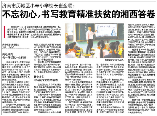 跨越千里,情撒湘西。崔金顺用爱和责任书写了教育精准扶贫的湘西答卷。他说:“作为一名教师,作为一名党员,能够参与到脱贫攻坚中来,是这一生最大的荣幸和荣光。”