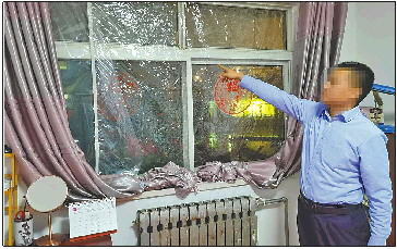由于暖气温度不达标,为了保暖,市民在窗户上贴了一层塑料。