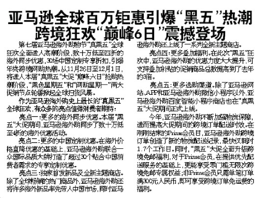 亚马逊全球百万钜惠引爆“黑五”热潮