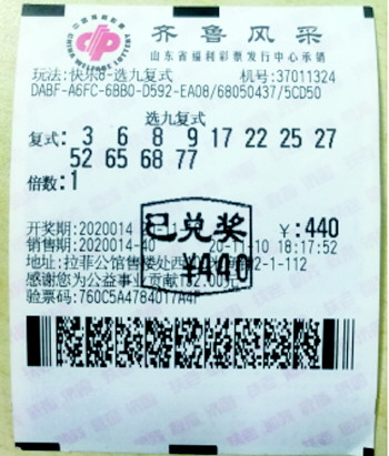 第二天,王先生去福彩站对照中奖号码,发现12个号码竟然没有一个与中奖号码相同,还没摸清楚快乐8游戏规则的他认为自己没有中奖,自嘲地对销售人员说:“瞧咱这运气,开80个号码,一个没中,这也不容易啊!”说完把彩票放在桌子上就准备要走。销售人员连忙说:“投注‘选九’一个号码不中也有奖的,我来给你看一下。”这下轮到王先生愣住了,“一个号码不中也有奖,这不是开玩笑吧!”销售员熟练地在投注机上操作兑奖后,这张投入了440元的彩票,每注中奖2元,奖金也恰好是440元,令王先生直感诧异。