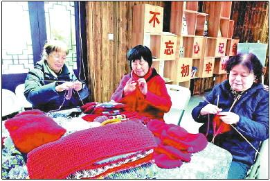爱心人士在为贫困地区的孩子们编织围巾手套等。 (资料片)