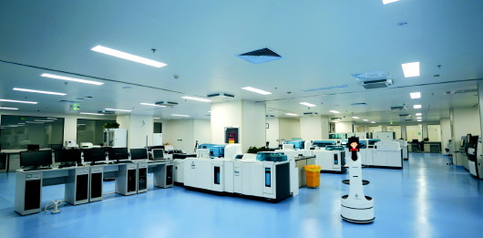 总试验场地6400余平方米,配备大型检测设备70余台套,包括日本希森美康全自动模块血液体液分析仪(XN-20)流水线、自动血涂片制备仪(SP-16)、CellVision AB公司全自动细胞形态学分析仪(DI-60),全自动尿液分析仪(UF-5000)流水线,沃芬全自动凝血分析仪(ACL TOP 700 LAS)流水线,罗氏全自动生化免疫流水线,安图全自动生化免疫流水线,贝克曼库尔特化学发光仪(DXI800)流水线,迈瑞全自动化学发光免疫分析仪(CL-2000i)流水线,国内第一条装机的雅培Alinity化学发光分析仪流水线等。