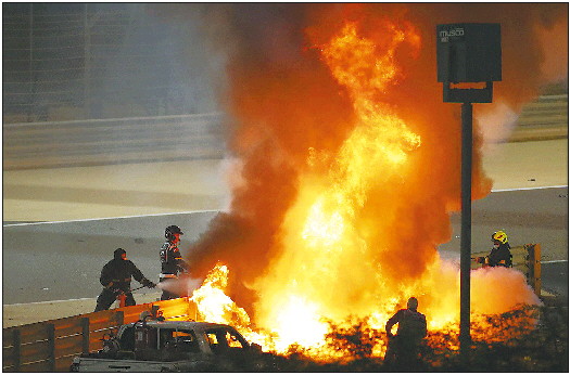 当地时间11月29日,2020赛季世界一级方程式锦标赛(F1)巴林站的比赛中,哈斯车队车手格罗斯让在比赛中突发意外,赛车失控撞向金属护栏,座舱燃起大火,赛车也断为两截。赛车手在救援人员灭火时自行翻越围栏火场逃生,随即被送往医院治疗。