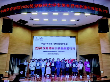 11月26日,“中国体育彩票·新长城助学基金”同样将莘莘学子的希望带进天津医科大学,30名特困大学生每人收到了4000元助学金。临床医学专业受助学生代表王漪表示:“作为一名医学生,体彩的关爱为我实现救死扶伤的理想打下了坚实基础。我会不忘初心、不负所托,带着这份爱一直走下去。”为表达对体彩衷心的感谢,天津医科大学还向天津体彩回赠了铭牌,希望同学们刻苦学习,为祖国医药卫生事业的发展贡献力量。