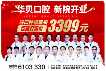 随着和平广场机构的盛大开业,华贝口腔将在潍坊拥有东风东街机构及和平广场机构两家机构,更方便市民就医,并为市民提供更优质的口腔诊疗服务。开业期间,华贝口腔联合厂家惠民,进口种植体套餐打包价3399元。华贝口腔在为市民提供看牙实惠的同时,更是为市民准备了10重好礼,包括有机会抽取免费种植体,教师、环卫工人、医护工作者及老党员等群体免费洁牙,消费满额砸金蛋等丰厚礼品等您拿回家,有意向的市民可拨打热线或走进华贝口腔了解参与,市民除享受免费口腔检查外,还能领取食用油(900ml)一桶。预约热线6103330。