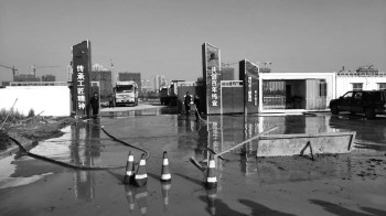 24日上午,执法人员在对寒亭区泰祥街附近的一处工地检查时,发现该工地冲洗设备不能正常使用,冲洗的泥水直接排到了市政雨水管网,随后联合执法检查组通知了辖区执法部门,辖区执法部门下达了停工整改通知。26日上午,执法检查组检查时发现,该处塌陷的地方已整改到位,冲洗设备已能正常使用。26日上午,检查组来到文化路南首的一建设工地发现,该工地9月份检查时存在的冲洗设备出口路面软化的问题已得到了整改,路面上铺上了厚厚的铁板,渣土车带泥上路的现象得到了改善。