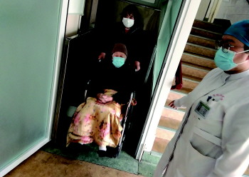市北区人民医院急诊科位于门诊楼的东端,与门诊楼一楼有11级台阶、约两米的高度差。这11级台阶,一般急诊患者尚能上下,对于老年、行动不便急诊患者非常不便,尤其用轮椅和担架搬运急诊患者更加困难,是困扰急诊科已久的固有障碍和安全隐患。该院结合年度安全生产标准化达标建设,将其列为攻坚克难重点。经过考察论证,充分利用11级台阶处的有限空间,与厂商技术人员共同研发建造既能搭载轮椅又能搭运担架的升降平台。急诊科白天患者流量较大,基础施工只能在晚上且没有危重急诊患者的限定时间段进行。历经一个月突击施工、一个月精心完善、一个月平稳运行,一部独具匠心的升降平台,因地制宜打造出急诊无障碍安全通道。