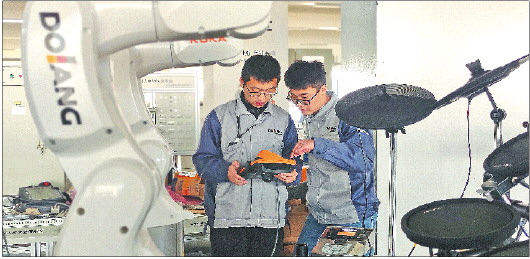来到山东栋梁科技设备有限公司的第一天,“95后”孔德国就看到了上千台工业机器人,震惊之余,他梦想“有一天自己能够操纵机器人”。