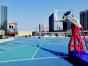 配色艳丽的篮球场让整个广场时尚充满活力。