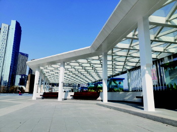 连廊造型美观,可供市民休息。