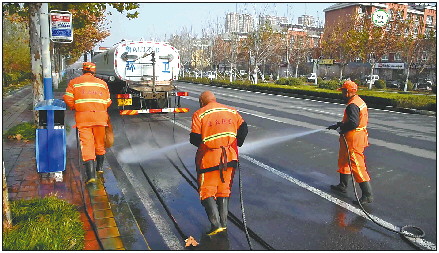 循环对城区主要道路的辅道、人行道、路牙石、绿化带边、隔离栏下等部位进行冲洗作业,彻底消除积尘、砂石滞留,杜绝二次污染。加大施工工地、拆迁工地周边路段及渣土车辆途经路线等区域的机洗频率,消除扬尘污染,确保路见本色。
