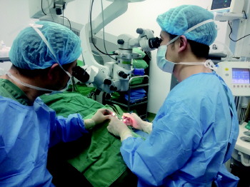 在开州区人民医院展开支援工作的还有由潍坊市人民医院眼科医生刘珣带队的第三批鲁渝扶贫合作医疗队。在开州人民医院完成了高硬度高龄病人白内障摘除加晶体悬吊手术、泪囊鼻腔吻合等手术,完成多台有难度的白内障玻璃体微创切割手术。针对当地实际,以集中授课、重点示范、病例讨论等形式开展培训工作,对低年资医生手把手带教,与高年资医师相互探讨临床工作经验,使其帮扶的医护人员业务水平得到了较大提高。