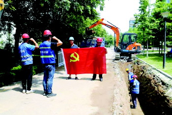 把工地变成“战场”,红色党旗指引攻坚战斗方向。330个小区分布在东港区、开发区、高新区、山海天,点多面广,而且很多老旧小区建成时间长,各类建设工程资料缺乏,地下燃气、热力管道及通讯光缆等历经多次变动,分布情况极其复杂。面对这些客观难题和“硬骨头”,日照市水务集团坚持党建引领攻坚,划分7大“战区”由集团领导包区作战,集团中层干部全部编入“战斗”序列,并从机关部室和各子公司选拔510余名精兵强将尽锐出战,把其中的180余名党员按照各攻坚小组划分成立了21个攻坚党支部,每天“晒进度、定计划”,你追我赶竞速推进。各攻坚党支部全面扛起责任,迅速把党旗插到攻坚一线,党建工作与工程建设同步开展,统筹做好内外协调、工期督导、质量监控、安全生产、文明施工和环境维护。党支部分别组建 “党员突击队”,成立“党员攻关组”,创建“党员示范区”,实施党员“包联包责”行动,组织开展比安全、比质量、比进度、比效益、拼能力、拼作风、拼创新、拼服务“四比四拼”劳动竞赛,利用晚上时间、雨期停工及施工间隙,召开支委会、党员大会,开展主题党日活动,丰富“工地组织生活”,通过支部内党员间、一线同志间的相互学习和经验交流,产生集合效应,融合集体智慧,提升党支部的组织力、凝聚力和战斗力,引领广大攻坚队员坚忍不拔啃下“硬骨头”,齐心协力决胜攻坚战。