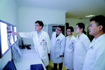 杨光诗(左三)团队查看患者病情。