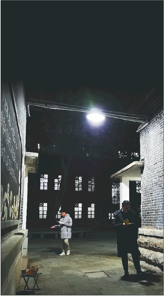 12月7日,两名曲师大学生在校园内的路灯下读书。 齐鲁晚报·齐鲁壹点记者 巩悦悦 李家澍 摄